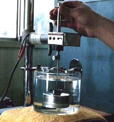 次にアスファルトがどれだけ柔軟性を保持しているか針入度試験機という検査機で試験を行います。