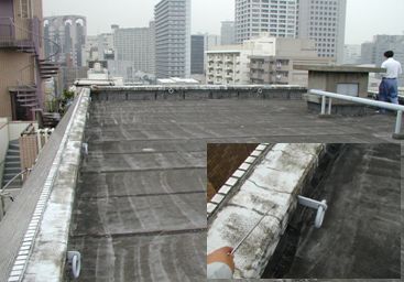 屋上の防水層の劣化状態を目視、指触、打診することにより確認する調査です。劣化の進行程度、不具合箇所の指摘、改修するにあたってどういった防水材料を使うべきかなどのアドバイスを報告書にて提出いたします。(調査日から報告書提出まで約2週間程度)